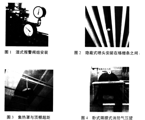 某大型商业建筑,主体地上5层,地下1层,建筑高度26.8m,每层建筑面积2000m2,每层设置了1个防火分区,按规定设置了自动喷水灭火系统。地上商业区均采用格栅类通透顶棚,地下车库均不设顶棚。该商业建筑在地下一层设有288m3的消防和生活合用的消防水池1座,并分成能独立使用的2个水池,水池的有效容积和补水时间均符合要求。在屋面设有消防气压给水设备配合18m3消防水箱增压,现场验收检查的照片如图1至图5所示。此外,该建筑内还设有室内外消火栓系统、正压送风系统、机械排烟系统、火灾自动报警系统、消防应急照明、消防疏散指示标志、灭火器、消防电梯等消防设施,消防控制室设在地下一层。