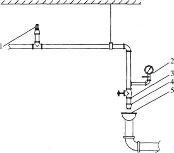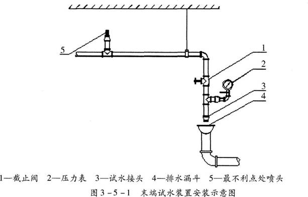 1—最不利点处喷头2—压力表3—球阀4—试水接头5—排水漏斗