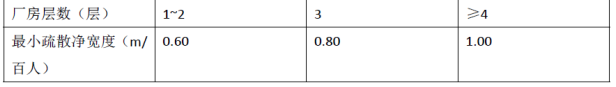 3.7.5 厂房内疏散楼梯的最小净宽度不宜小于1.10m,疏散走道的最小净宽度不宜小于1.40m,门的最小净宽度不宜小于0.90m。首层外门的总净宽度应按该层及以上疏散人数最多一层的疏散人数计算,且该门的最小净宽度不应小于1.20m。