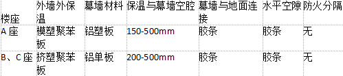 A座与B座、C座的间距均为9.0m,B座与c座的间距为32m。大厦保温系统如下表: