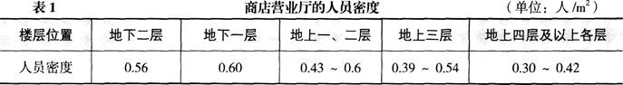 (提示:商店营业厅人员密度及百人净宽度指标分别见表1、表2)