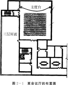 图2—1为一高层建筑内的会议厅布置图,该会议厅可容纳200人,建筑面积为386㎡,请分析以下问题:
