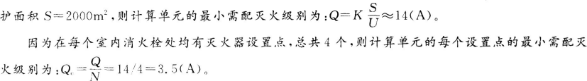 4kgABC干粉灭火器的灭火级别为2A。2×2=4(A)>3.5(A);4个灭火器配置点,4×4=16(A)>14(A),均符合规范要求。