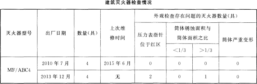 3.2018年6月25日一次消防检查,对灭火器的检查情况见下表。根据检查情况,简述哪些灭火器需要维修、报废。