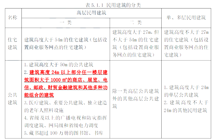 建筑高度的计算。 建筑类型的划分,耐火等级的判定。 建筑设计防火规范 GB50016-2014(2018 年版)条文: 5.1.1 民用建筑根据其建筑高度和层数可分为单、多层民用建筑和高层民用建筑。高层民用建 筑根据其建筑高度、使用功能和楼层的建筑面积可分为一类和二类。民用建筑的分类应符合表 5.1.1 的规定。