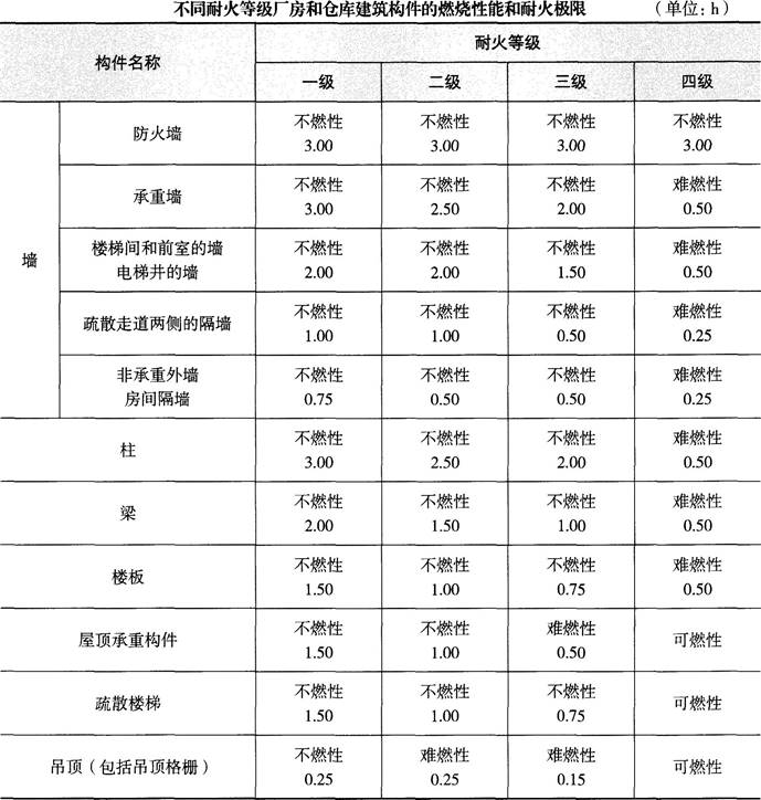 1.该仓库耐火等级为二级。 不同耐火等级厂房和仓库建筑构件的燃烧性能和耐火极限见下表。