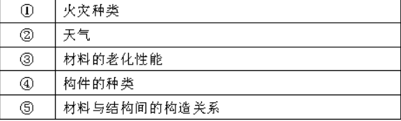 在火灾中,建筑耐火构件起着阻止火势蔓延扩大、延长支撑时间的作用,影响建筑构件耐火性能的因素较多,下表中能影响建筑构件耐火性能的是()①火灾种类②天气③材料的老化性能④构件的种类⑤材料与结构间的构造关系