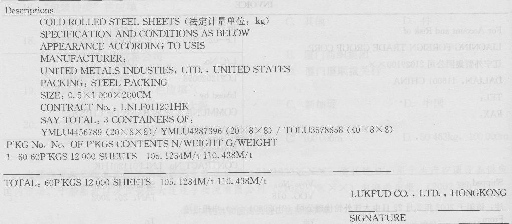 (三)本题中进口货物系沈阳沈港电器产业有限公司(2101930×××)委托进口,用于生产空调设备供应国内市场.于船舶进口次日委托大连连孚物流有限公司(2102980×××)向海关申报.(2002年) “运费”栏应填( ).