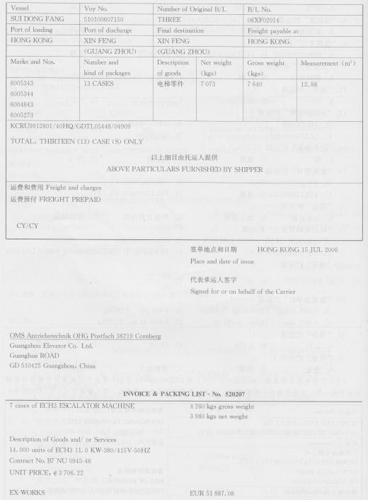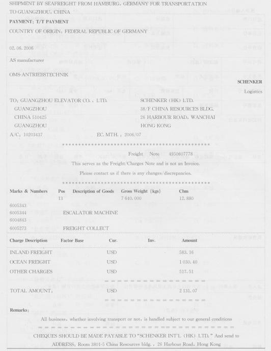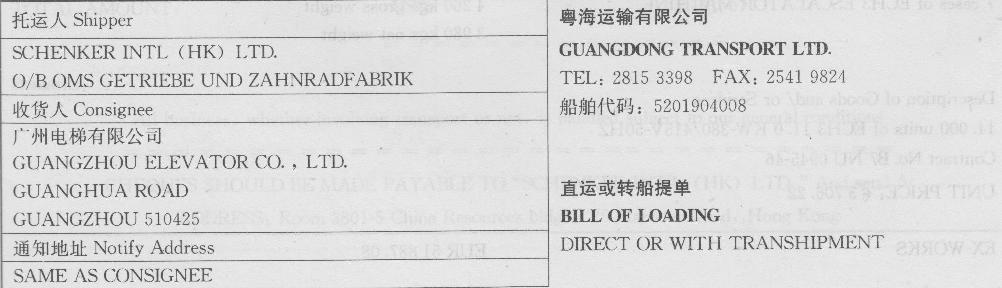 (十)广州电梯有限公司(440193××××)持C51066000019号加工贸易手册向海关申报进口电梯用曳引机一批,该批货物列手册第22项,法定计量单位同成交计量单位.保险费率为0.3‰(2006年) “毛重”栏应填( ).