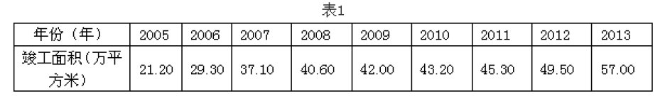 <p>某市2005~2013年住宅竣工面积如表1所示。下列算式中,求取该市2005~2013年住宅竣工面积平均发展速度正确的是(