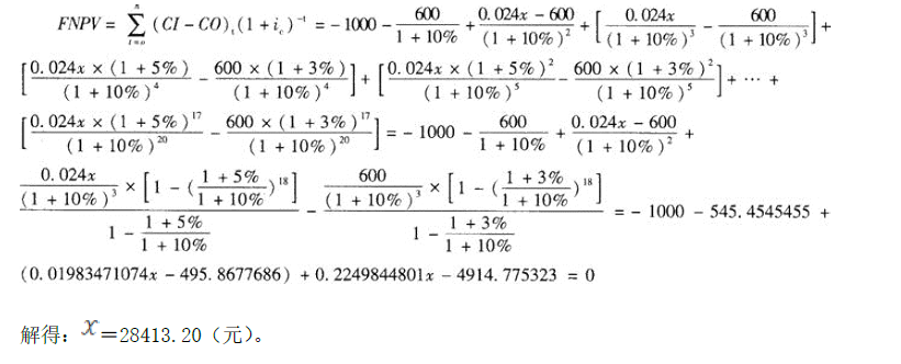 (1)前三年每年承租旧商业大楼的租金为 600×10000=600(万元),设甲公司前2 年平均每个摊位的最低年租金为?元,则甲公司前 2 年的最低年净收益=400×(1-40%)x/10000=0.024 (万元)。