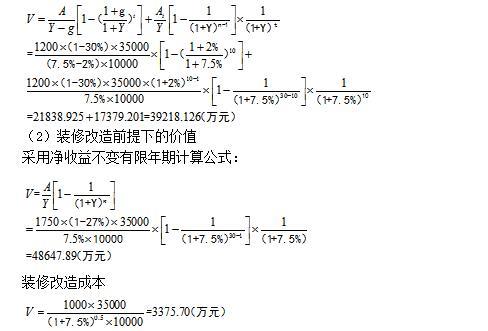 本题考核的是最高最佳利用。维持现状前提,还是装修改造前提。分别测算维持现状的价值,和装修改造后的价值。然后比较孰高。高的就是最高最佳利用方式。