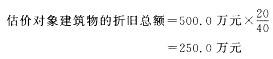 (5)求取建筑物折旧。采用直线法求取折旧额。参照有关规定并根据房地产估价师到实地查看的判断,该专用仓库建筑物的经济寿命为60年,有效年龄为20年,残值率为零。由于土地使用权剩余期限近49年,建筑物剩余经济寿命40年,建筑物的经济寿命早于土地使用期限而结束,应按照建筑物的经济寿命40年计算建筑物折旧,故: