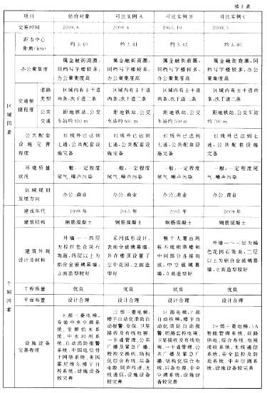 可比实例C:中正大厦,位于金融街D区3号,钢筋混凝土结构,写字楼用途,占地面积为9752.56m2,建筑面积为83773m2,地上二十三层,地下三层,交易单价为17578元/m2,交易时间为2008年5月。