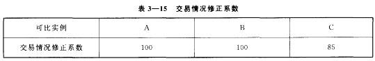 (1)交易情况修正:估价对象为现房,可比实例C为预售房。开发商基于回笼资金、降低风险的考虑,预售价格一般低于现房销售价格。根据有关统计资料,并结合估价人员对估价对象所在区域写字楼市场调查,确定交易情况修正系数,见表3—15。