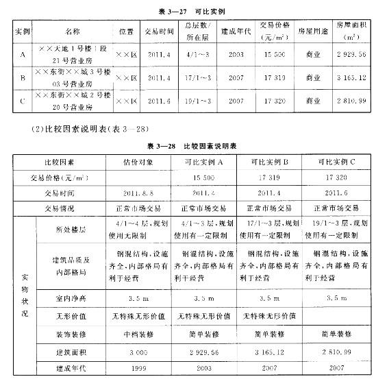 (1)选取可比实例(表3—27)