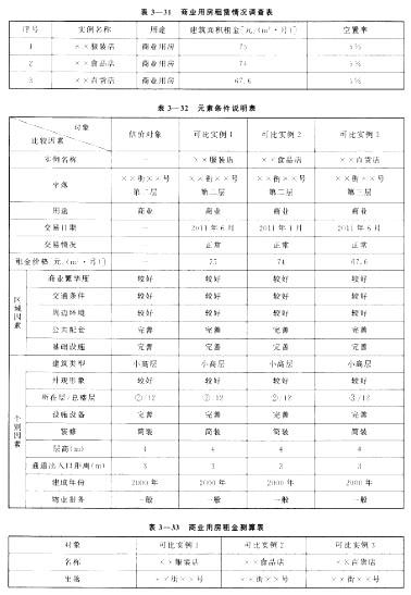 估价对象商业用房为可出租型房地产,故可以获得市场的正常租金价格。根据对估价对象附近区域商业用房的租金及空置率调查,通过比较调整后得到估价对象的租金,详细情况见