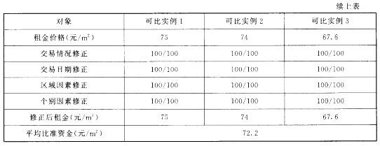 3个可比实例修正后的租金较为接近,故取三者的简单算术平均值作为估价对象客观租金水平,即估价对象商业用房的租金为72.2元/(m2*月)。