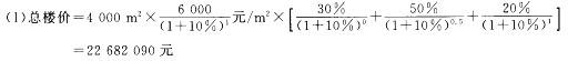 预计30%房屋在建成后即可售出;50%房屋半年后售出;20%房屋一年后售出。根据对市场行情的调查和预测,预计其平均售价为6000元/m2。