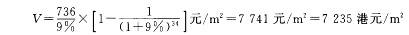 故采用收益法估价XX商业城第三层3001~3009号商铺的公开市场价值总额为:7235港元/m2X547.15m2=3958465港元,取整为396万港元。