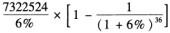 8000*3000*[1-(1+6%)-36]/[1 -(1+6%)-40]*6%/[1 -(1+6%)-36]=1595077(元)