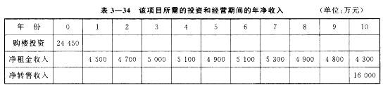 某公司购买了一栋写字楼用于出租经营,该项目所需的投资和经营期间的年净收入情况见表3—34。如果当前房地产市场上写字楼物业的投资收益率为18%,试计算该投资项目的财务净现值和财务内部收益率,并判断该投资项目的可行性。假设在10年经营期内年平均通货膨胀率为5%。 通过计算可得,该投资项目的财务净现值为()万元。