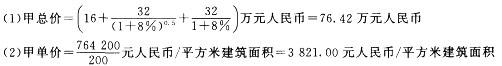 甲单价=3051.5元人民币/平方米建筑面积乙单价=(464.37X0.75)元人民币/平方英尺建筑面积=348.28元人民币/平方英尺建筑面积