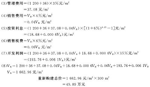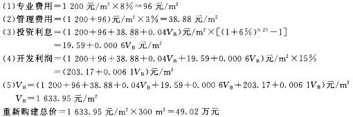 【解】设该房屋单位建筑面积的重新购建价格为VB,计算如下: