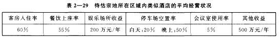 为了取得XX大酒店的一般正常收益资料,估价人员对位于同一供需圈的XX饭店、XX大厦、XX大酒店等在建筑规模、经营类型、建筑装修档次上与估价对象类似的星级酒店的经营情况进行了调查分析,得出在2000年、2001年、2002年三年多时间里,待估宗地所在区域内类似酒店平均经营状况见表2—29。