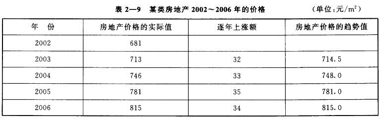 需要预测某宗房地产2007年、2008年的价格。通过市场调研,获得该类房地产2002~2006年的价格并计算其逐年上涨额见表2—9。 该类房地产价格逐年上涨额的平均数为()