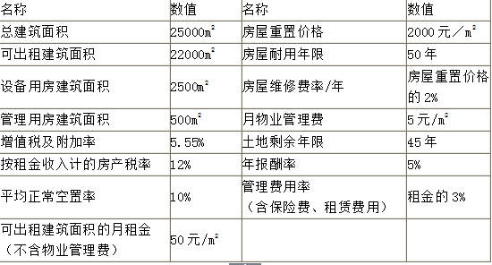 对某新建成的写字楼进行估价,估价人员掌握了在价值时点时的相关资料(表),并用收益法评估该写字楼的市场价值。