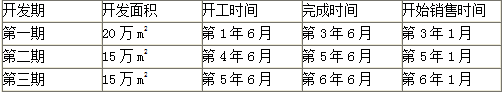 某市土地管理部门挂牌整体出让一宗土地面积为50万m2的住宅用地。某房地产开发公司拟取得该宗土地。出让文件规定可以分期开发,该开发公司拟用滚动开发的模式进行房地产开发,具体计划如下: