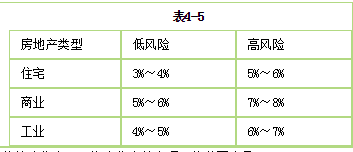 有一个大型购物中心,总建筑面积50000m2。现有一投资商欲整体购买该购物中心用于自营或者出租,开发商也有意整体出售该购物中心,现委托房地产估价机构对其公开市场价值进行评估。根据市场调查结果,当地商业房地产市场已趋于饱和;根据城市规划。该购物中心周边同一供需圈内未来还将兴建两个大型购物中心;当地有关部门发布的当地房地产资本化率如表4-5所示。