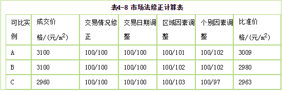 可比实例A、B、C均属正常交易,交易情况无需正,交易情况修正系数均为100/100。