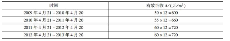 估价对象已出租,租约期至2013年4月20日。根据估价对象租赁合同,从估价时点起算,租约期内房地产年有效毛收入见表2。