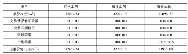 比准价格=可比实例房地产的价格×交易情况修正系数×交易日期修正系数×区域因修正系数×个别因素修正系数
