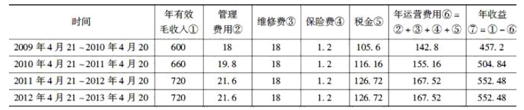 运营费用包括:管理费、维修费、保险费、税金,计算结果见表3(计算过程略)。