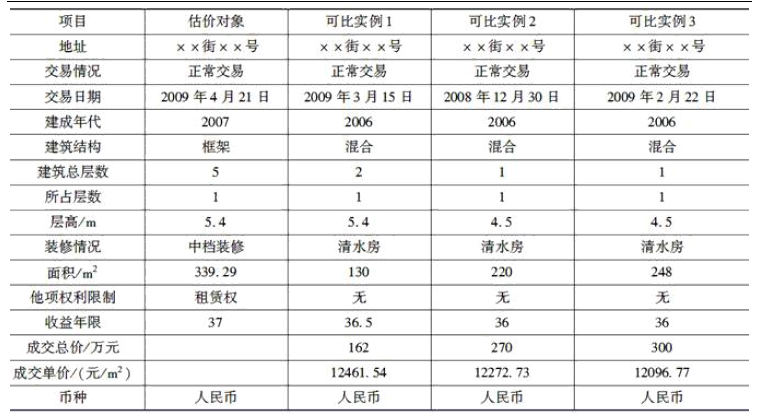 上述修正因素比较为间接修正,现将可比实例的交易情况、交易日期、区域因素、个