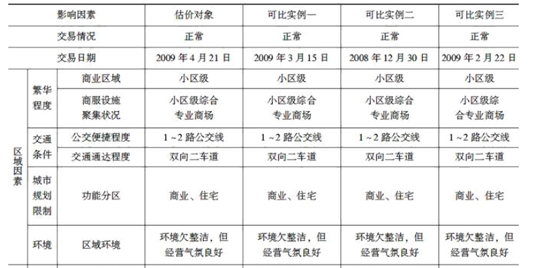 根据《房地产估价规范》及项目特点,本次比较因素选择交易情况、交易日期、区域因素和个别因素。