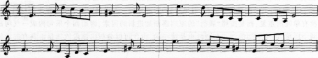 旋律写作。 要求: (1)分别以谱例中乐句作为第1句和第2句,创作第3句和第4句。 (2)完成后的结构为再现单二部曲式。