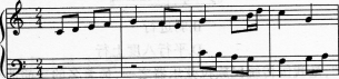 下列音乐片段使用的模仿手法是()。