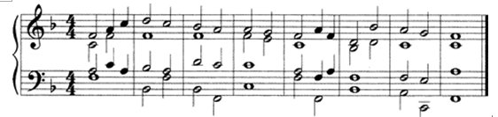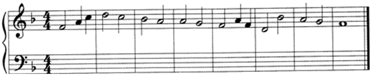 为以下旋律片段配置和声,和声进行合理。 要求: (1)分析调式调性。(5分) (2)终止处用带K和弦的完满终止。(5分)