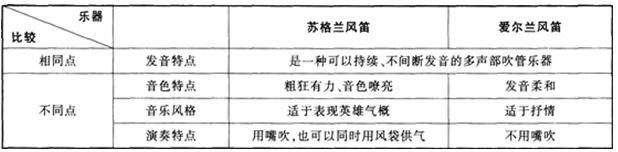 (2)那么爱尔兰风笛和刚才我们欣赏的苏格兰风笛有什么区别?