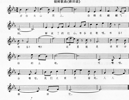 (1)此旋律为bE自然大调。 (2)此旋律曲式结构为五乐句乐段。图示结构如下: (3)该乐曲旋律是在四乐句乐段的结构上扩充而成,在谱曲时,将开头的一局歌词谱写成两个乐句,从而成为五乐句乐段。乐曲旋律总体上也是采用“起一承一转一合”的发展方式,在c乐句中达到高潮,表现了人们勤劳勇敢的美好品质。