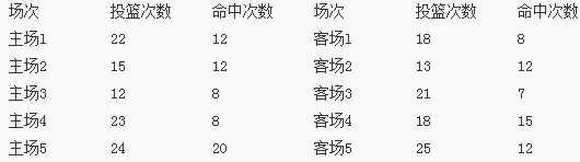 (1)根据投篮统计数据,在10场比赛中,李明投篮命中率超过0.6的场次有5场,分别是主场2,主场3,主场5.客场2。客场4。