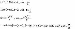 (1)求cosC和cosB的值: (2)当