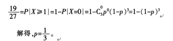 设三次独立试验中事件A在每次试验中发生的概率均为P,已知A至少发生一次的概