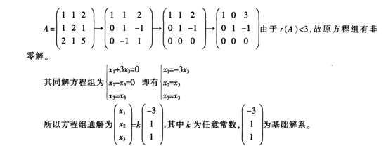 对方程组系数矩阵进行初等行变换化为阶梯形如下: