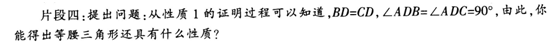 片段三:由上面的性质我们可以得到等腰三角形如下性质: