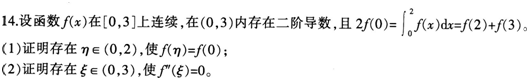 即2f(o)=2f(η),所以存在η∈(0,2),使得发f(η) =(0)。